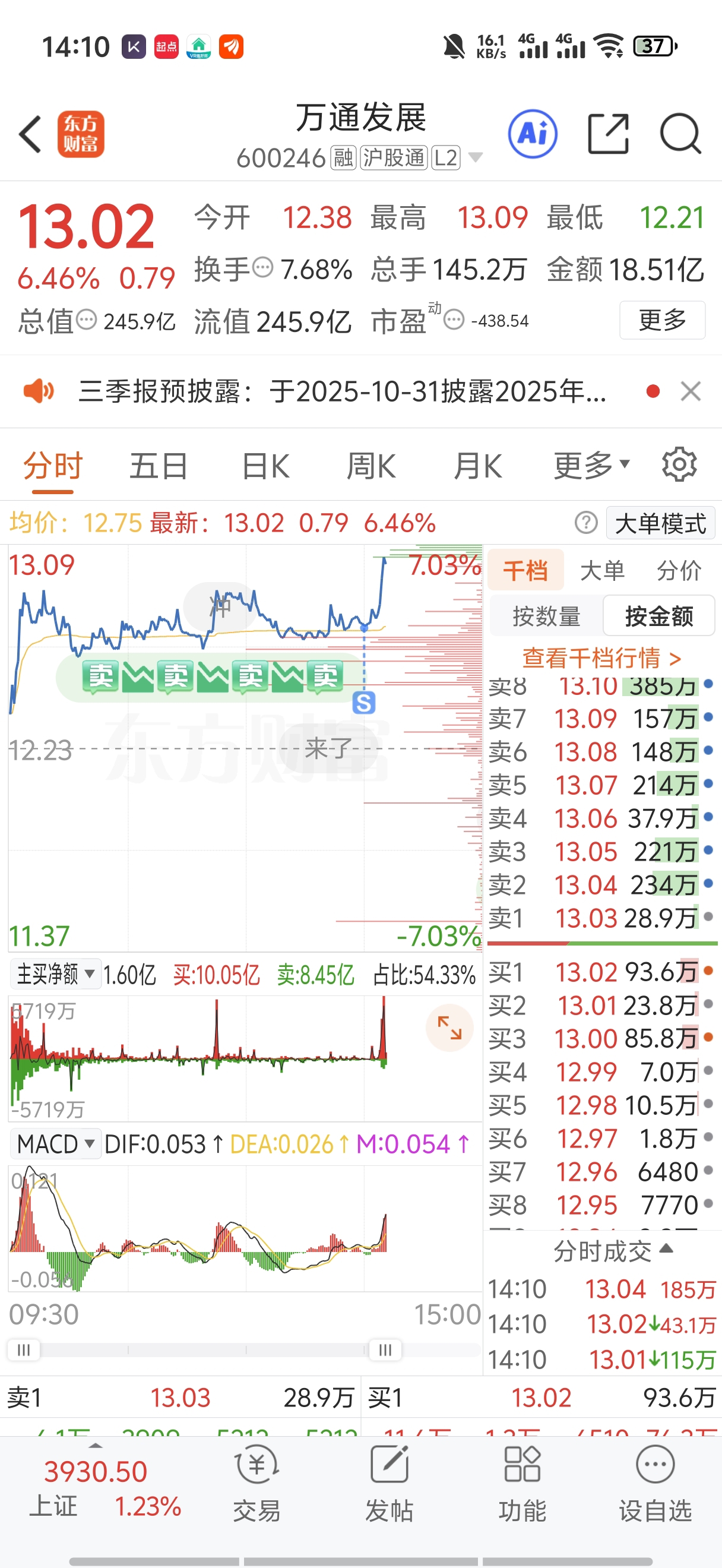 $万通发展(SH600246)$ 兄弟们感谢我吧,我一卖就拉