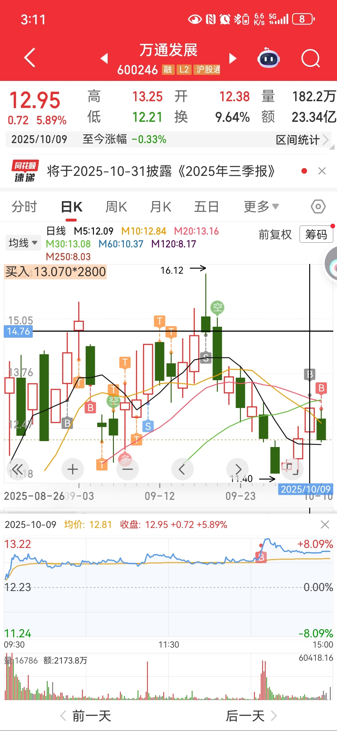 $万通发展(SH600246)$ 昨天看了一个早上没下手,下午被骗进来,既来之则安之加仓