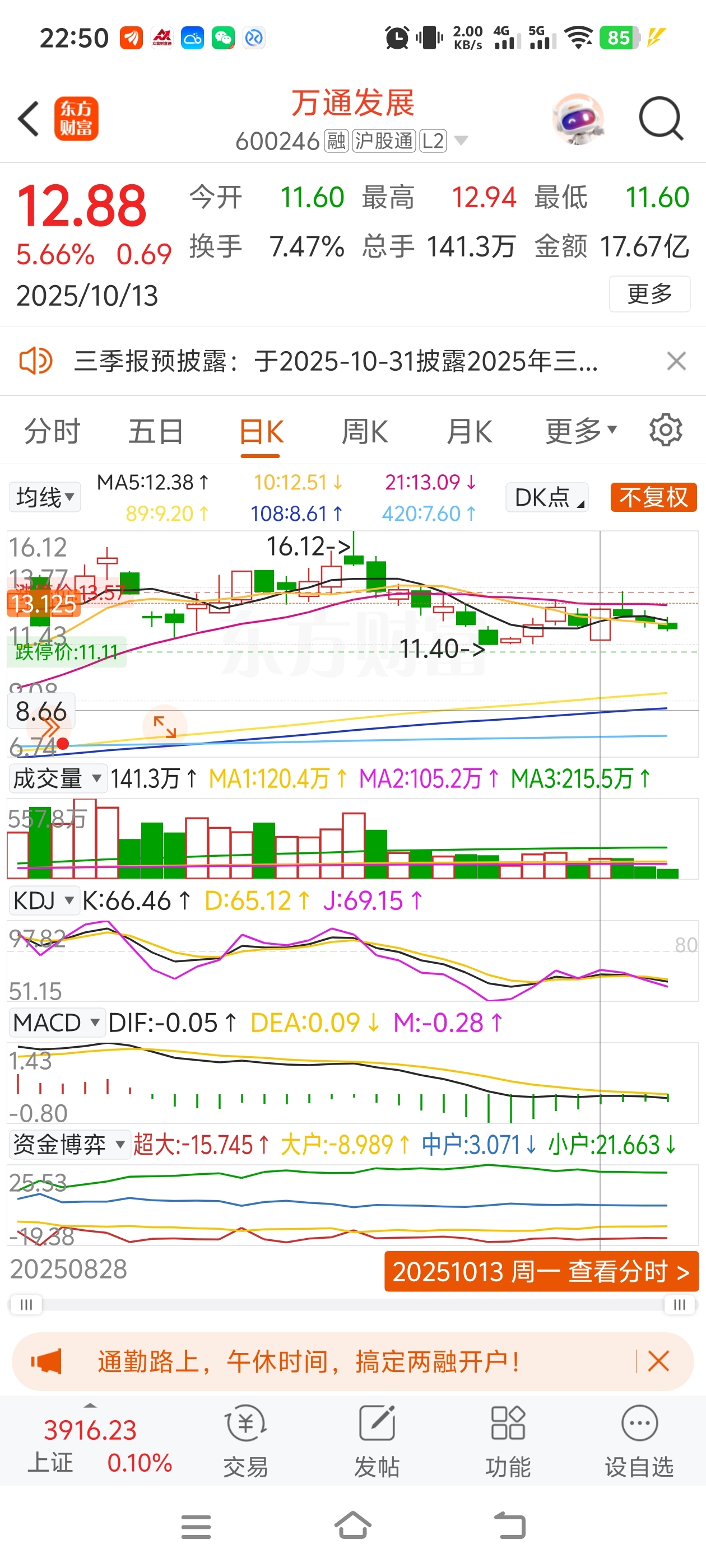 $万通发展(SH600246)$ 收盘价的密码:12.88 要尔发发