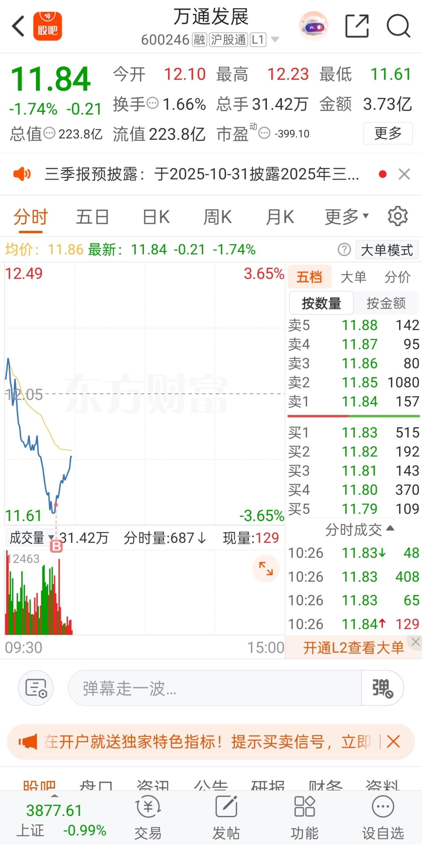 水下介入了个股$万通发展(SH600246)$ 尝试一波
