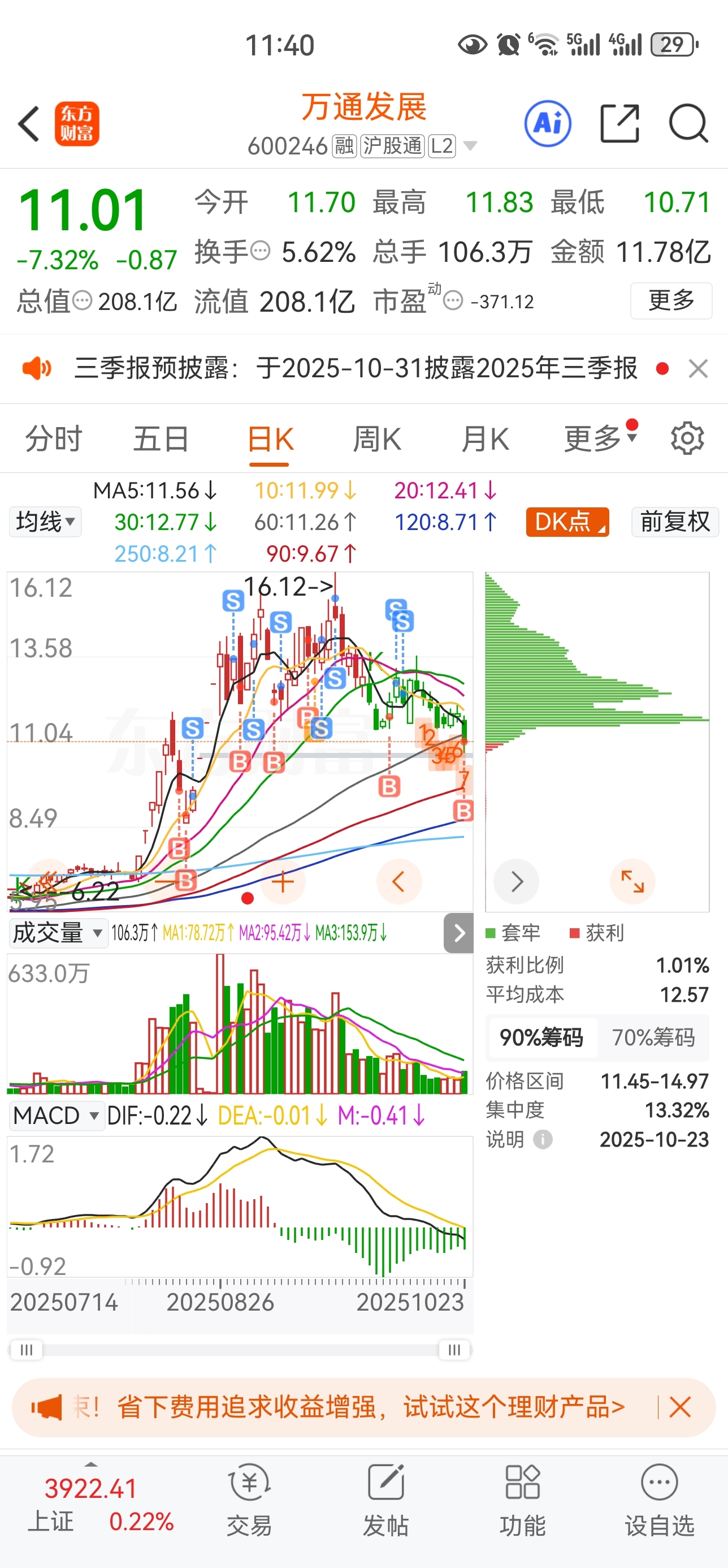 $万通发展(SH600246)$ 在远大吃两个跌停,割肉又回来你这了,你每次没让我失望。