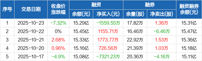 万通发展:融资净偿还1559.55万元,融资余额15.29亿元(10-23)