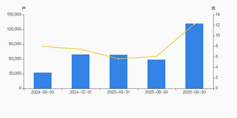 2024年9月30日至今,公司股东户数成倍增长,区间涨幅达308.98%。2024年9月30日至2025年9月30日区间股价上涨52.88%。