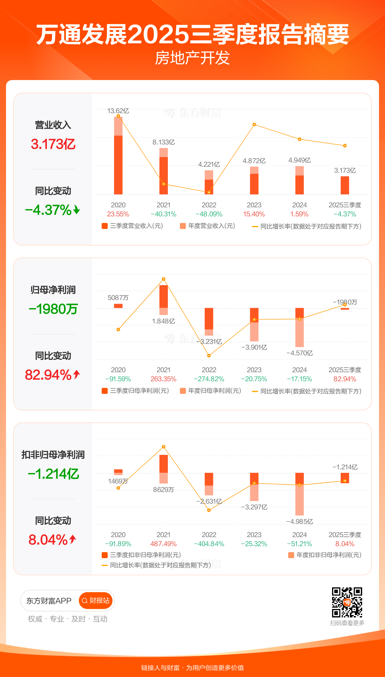 图解财报:万通发展前三季归母净利润-1980.02万元,上年同期-1.16亿元