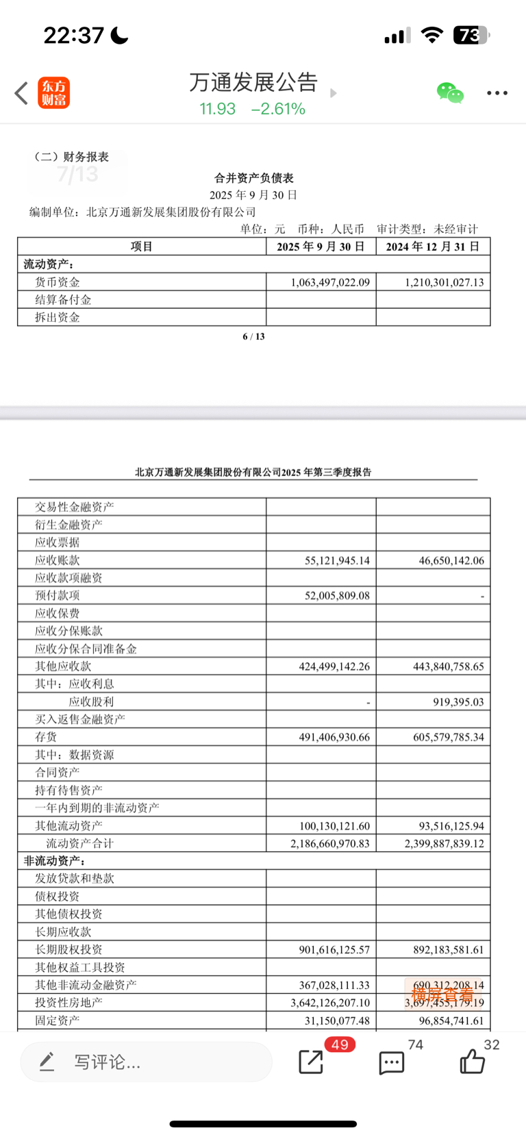 $万通发展(SH600246)$ 三季报确实多了一笔预付款出来,半年报时都没有,大概率是订购芯片的费用