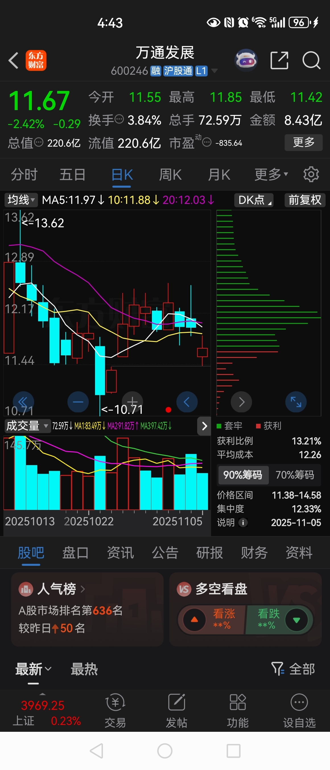 $万通发展(SH600246)$ 今日较昨日分歧减少、缩量。明日是继续延续今日的波动?还是继续下探回调?还是有所拉升?