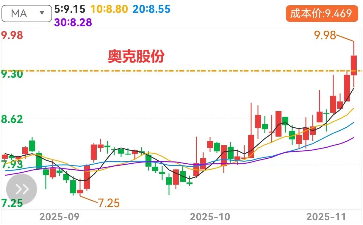 海新能科和奥克股份都是10月23日加入自选的,原因是K线图。这几天化工品表现不错,今天涨幅榜中被化工品霸屏,产品价格上调可能是催化剂。