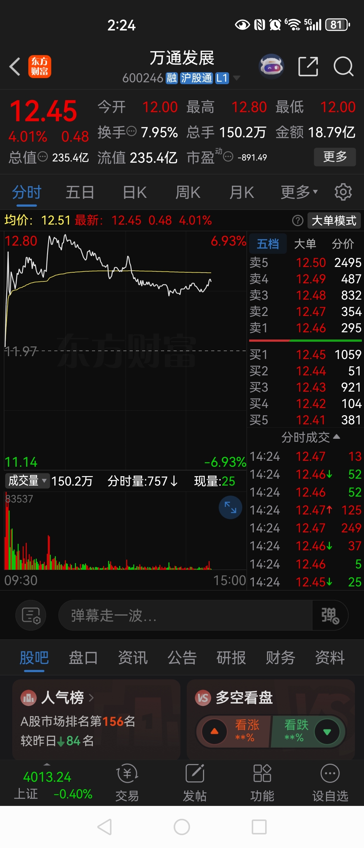 $万通发展(SH600246)$ 看来12.4应该是支撑住了。