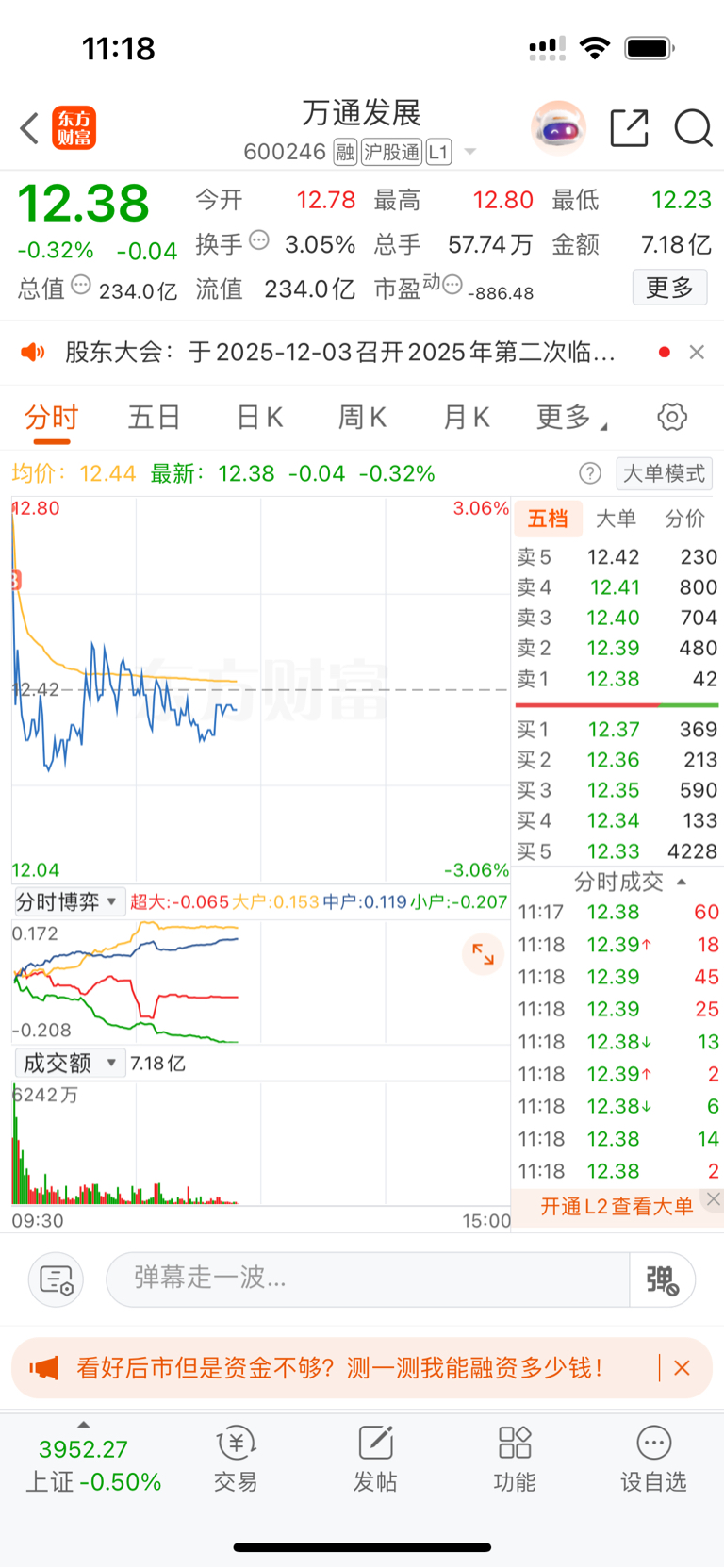 $万通发展(SH600246)$ 我 慌忙出门卖单挂成买单了,回头一看 差点昏死过去