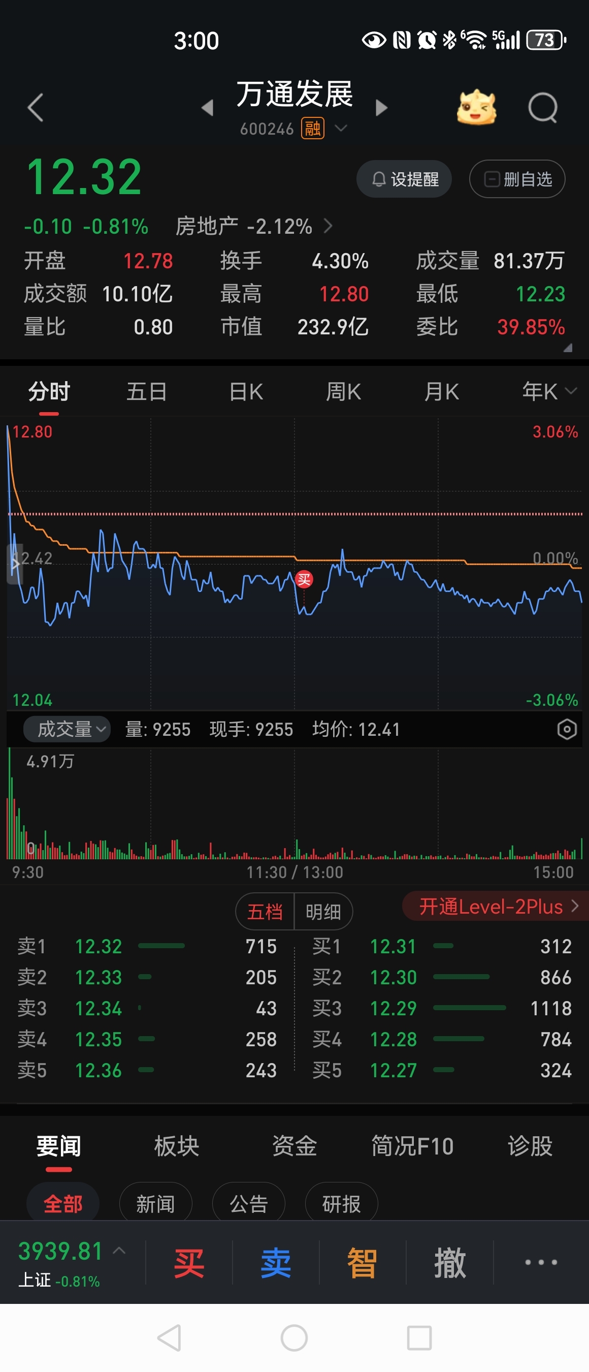 $万通发展(SH600246)$ 从早晨竞价开始的第1秒的13.66,再到开盘冲高的12.8,结果被主力一路向下砸回,就是使劲压着,不让涨,但是又不让跌的太深,刚要破12.25,马上就往上拉。高度控盘的结果,借着大盘回调下跌。这主力也是够阴的。不管三七二十一了,今天又加仓进了点货,明天竞价见,连同前一日进的货一块砸给你。有本事明天就闷杀我。
