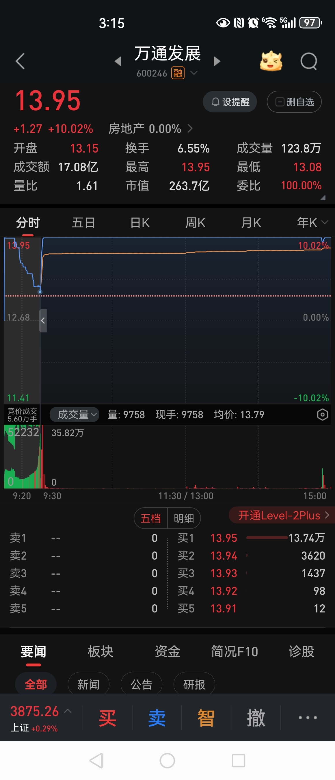 $万通发展(SH600246)$ 玩的真花啊,临近收盘还来了个板上换手