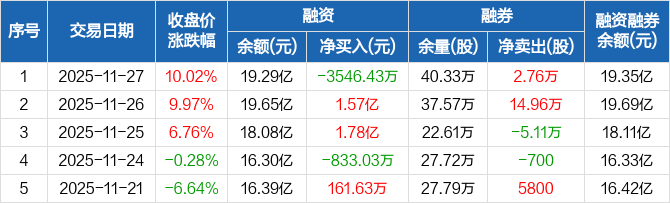 万通发展:融资净偿还3546.43万元,融资余额19.29亿元(11-27)