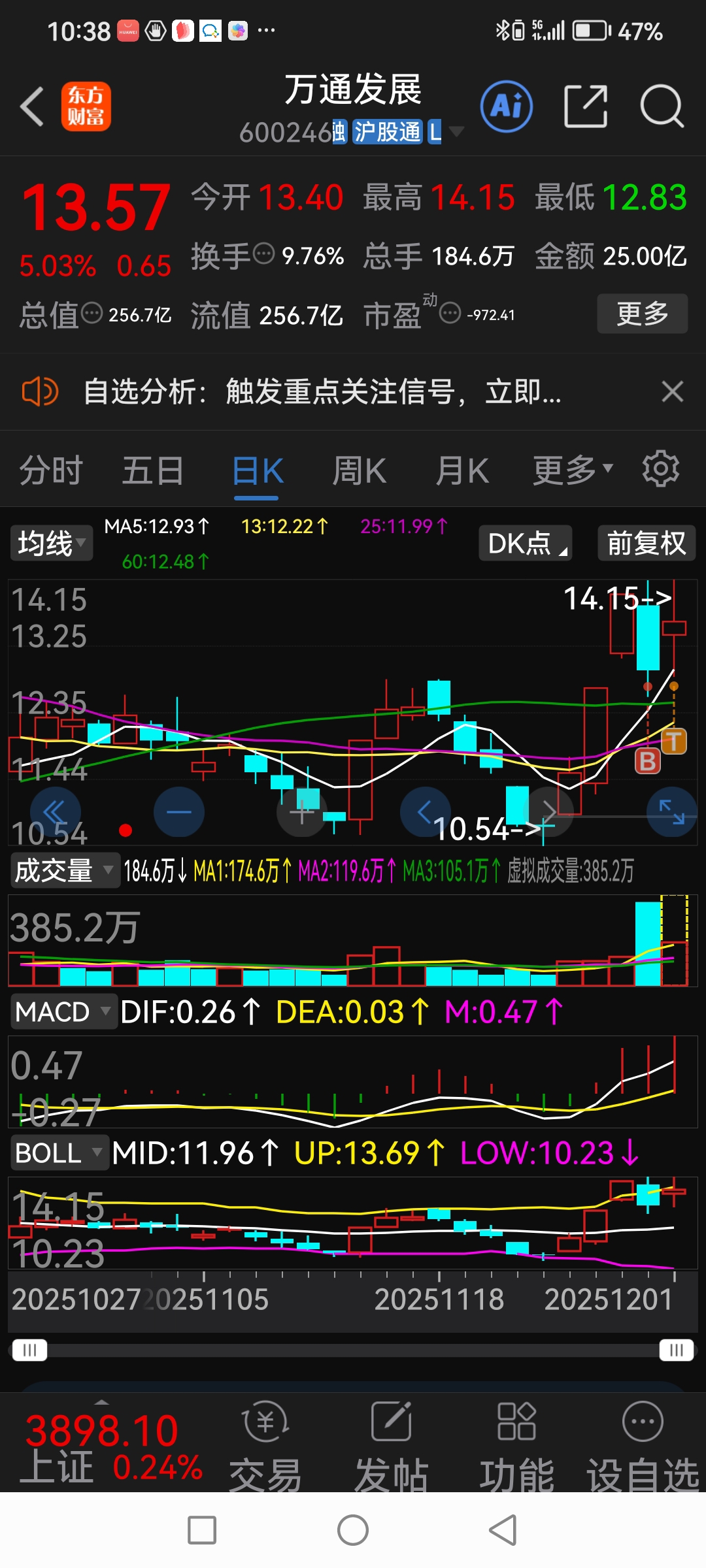 $万通发展(SH600246)$ 周五12.72买入早上13.15加仓从高13.98卖出周五的仓位还不错