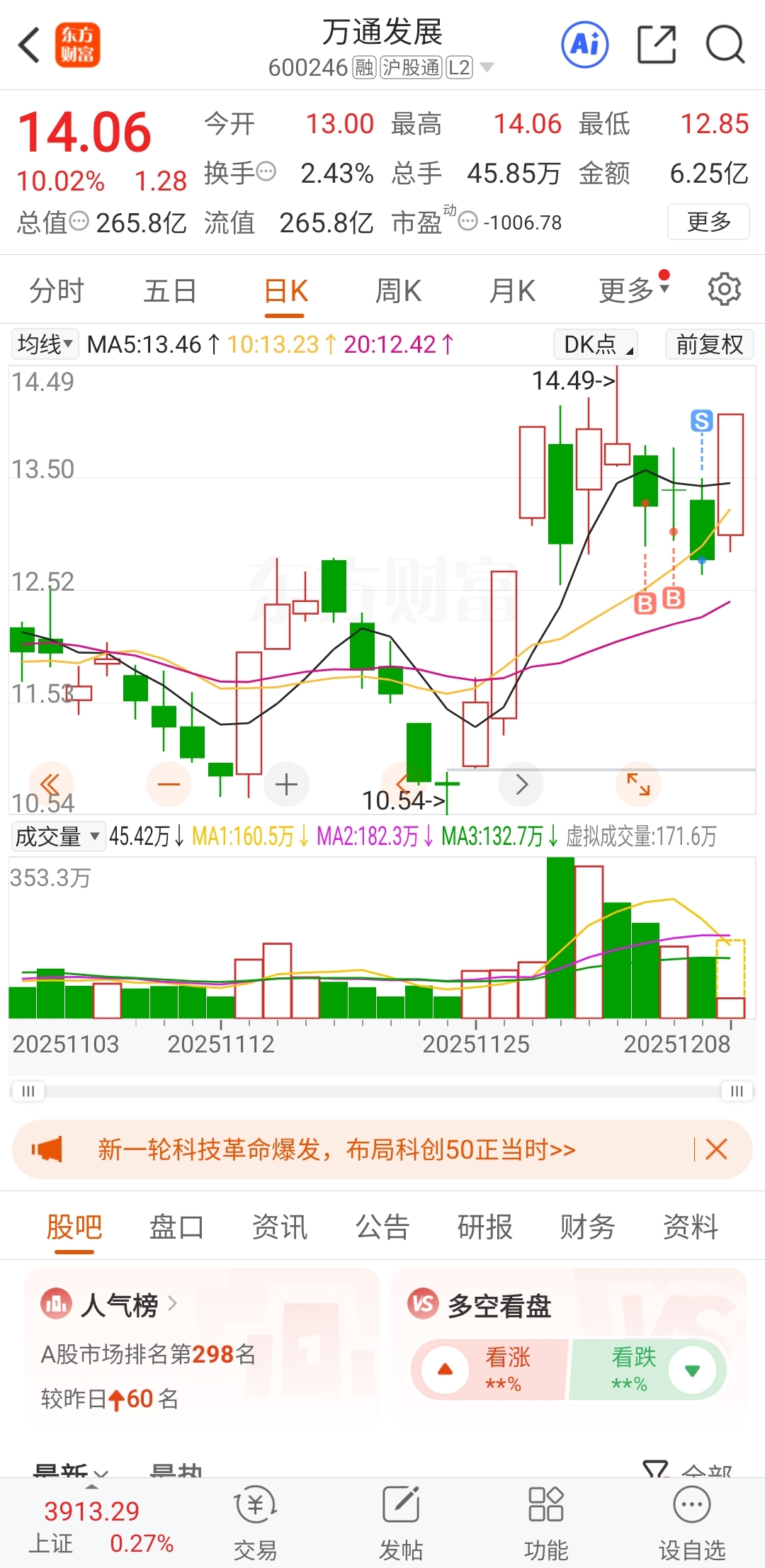 $万通发展(SH600246)$ 果然每次买这个股都是大亏离场,周五尾盘几分钟卖了,直接涨停666