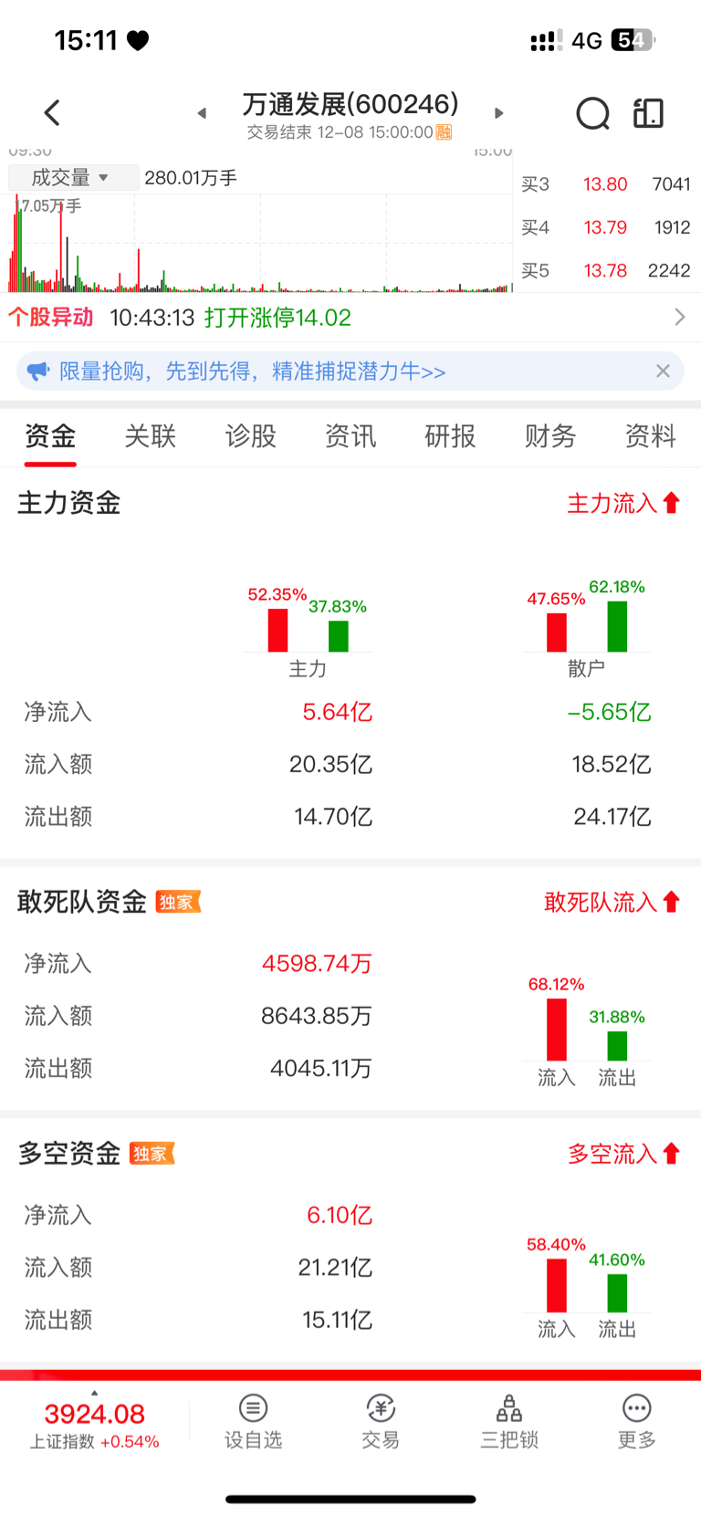 $万通发展(SH600246)$ 明天还能冲一下不?