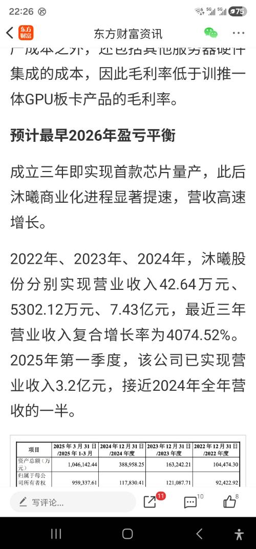 从自身经营情况出发,结合产品市场空间、市场份额及变动、客户复购和新客户验证及拓展情况,沐曦预计其达到盈亏平衡点的预期时间最早为2026年。