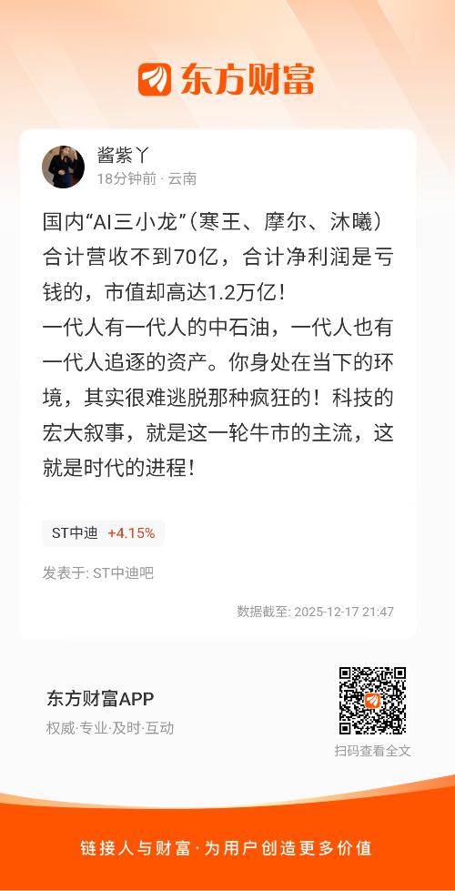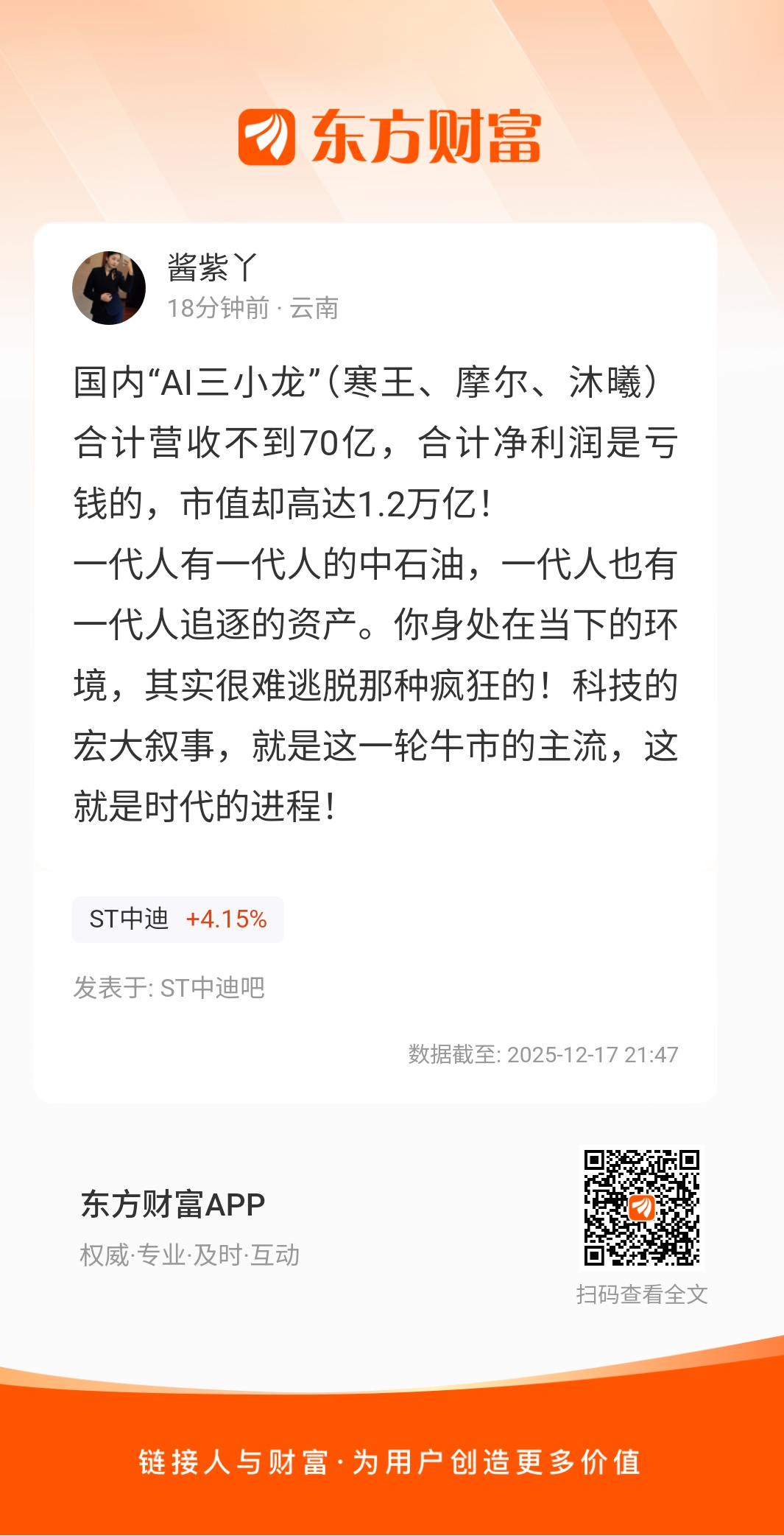 一代人有一代人的中石油,一代人也有一代人追逐的资产。你身处在当下的环境,其实很难逃脱那种疯狂的!科技的宏大叙事,就是这一轮牛市的主流,这就是时代的进程!