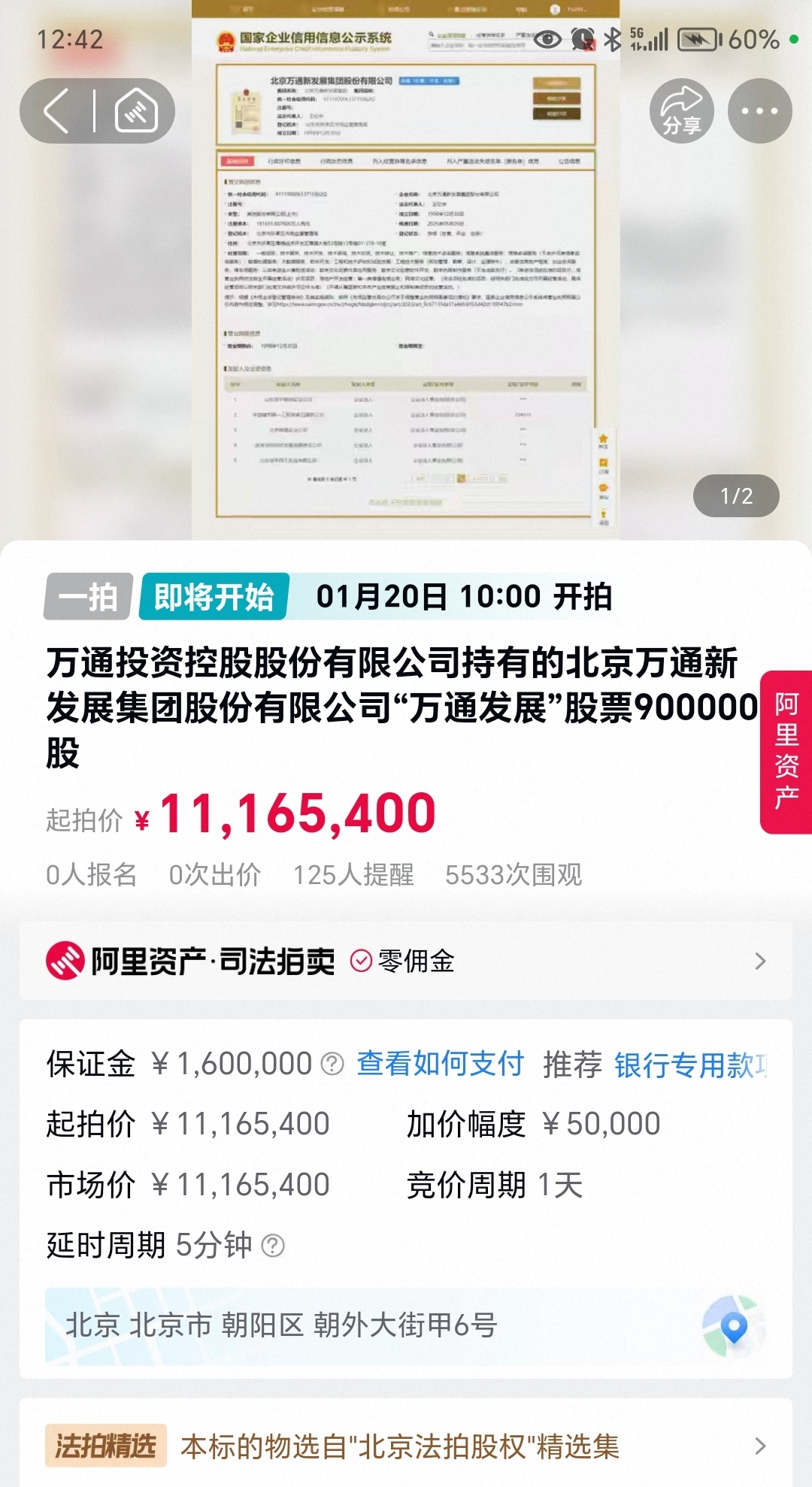 $万通发展(SH600246)$ 【淘宝拍卖】万通投资控股股份有限公司持有的北京万通新发展集团股份有限公司“万通发展”股票900000股