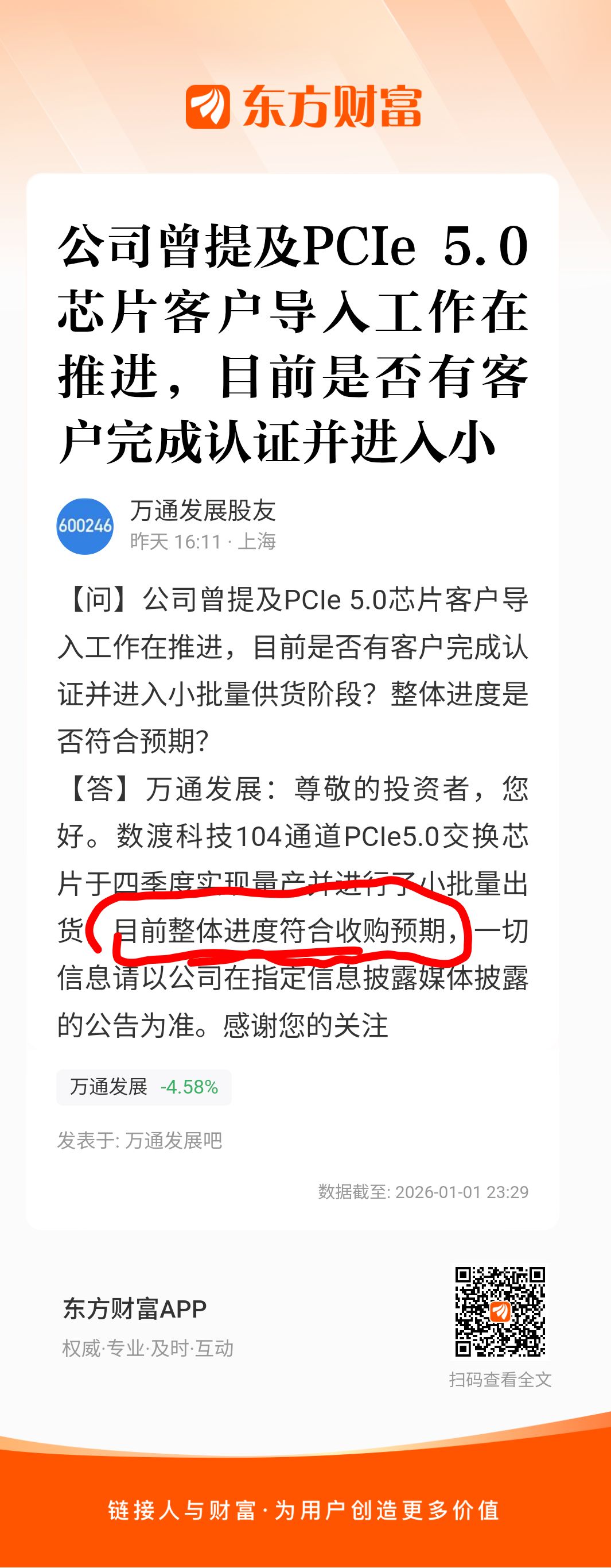 尊敬的投资者,您好。数渡科技104通道PCIe5.0交换芯片于四季度实现量产并进行了小批量出货,目前整体进度符合收购预期,一切信息请以公司在指定信息披露媒体披露的公告为准。感谢您的关注