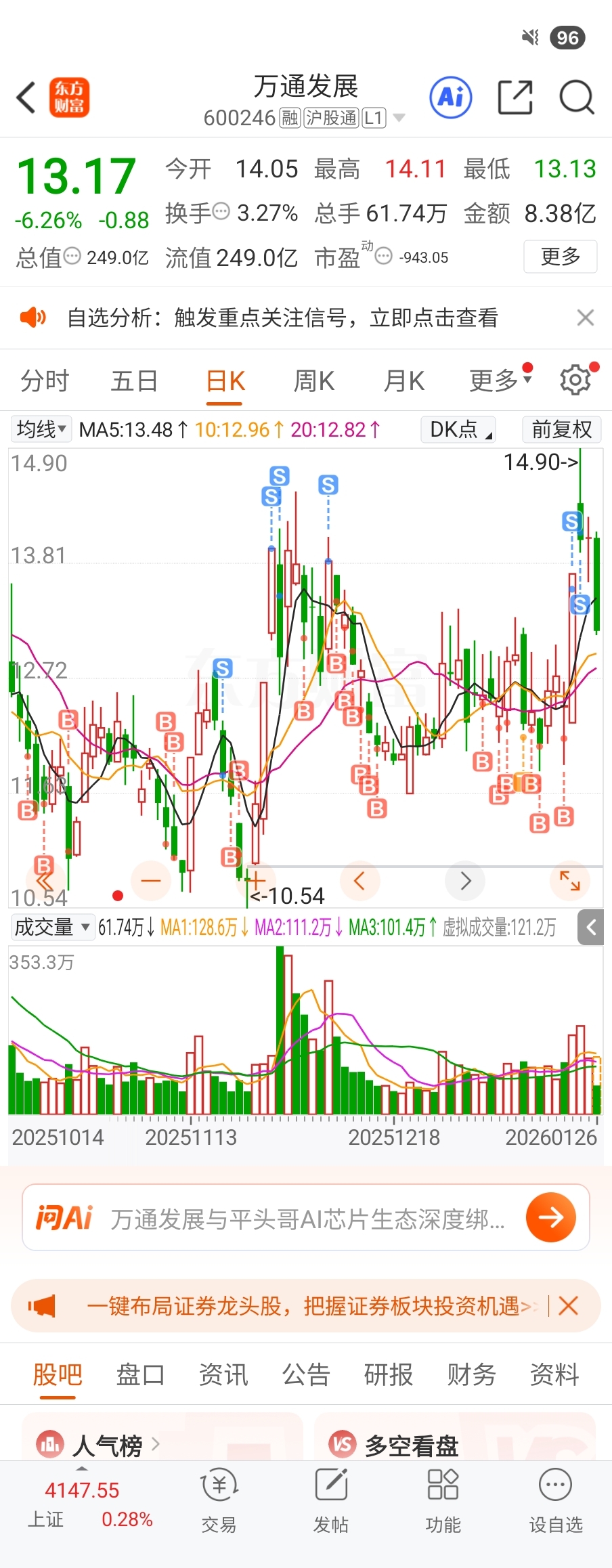 $万通发展(SH600246)$ 风里雨里12等你