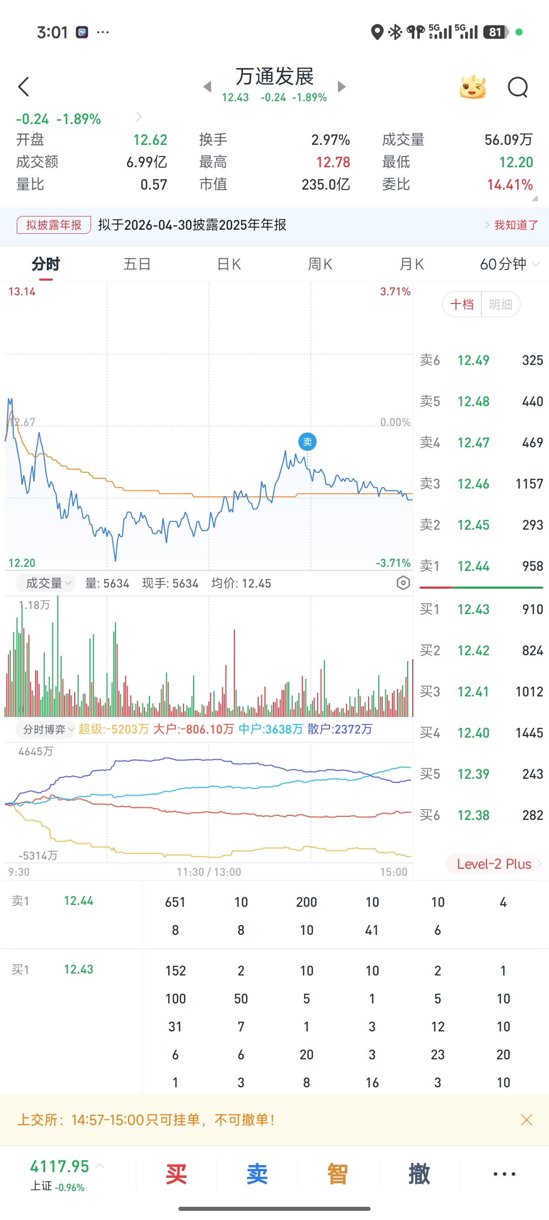 $万通发展(SH600246)$ 割了,删除,试盘第二天阴跌,第三天缩量跌,不护盘,跑了跑了,不跟你整了,主力大概率离场了,如果主力想拉升,涨停第二天就该拉高砸,主力害怕出大量,手里没有大量筹码,因为半年横盘已经派发完了,所以涨停第二天量能不大,说明没有承接盘,主力也不能继续拉高跑,筹码都在配资客和散户手里,防止他们先跑,所以这几天一直阴量跌!