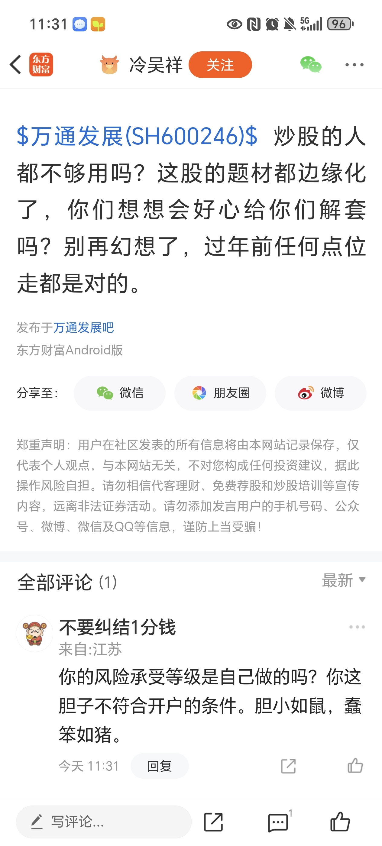 温馨提示: 1.根据《证券法》规定,禁止编造、传播虚假信息或者误导性信息,扰乱证券市场;2.用户在本社区发表的所有资料、言论等仅代表个人观点,与本网站立场无关,不对您构成任何投资建议。用户应基于自己的独立判断,自行决定证券投资并承担相应风险。《东方财富社区管理规定》