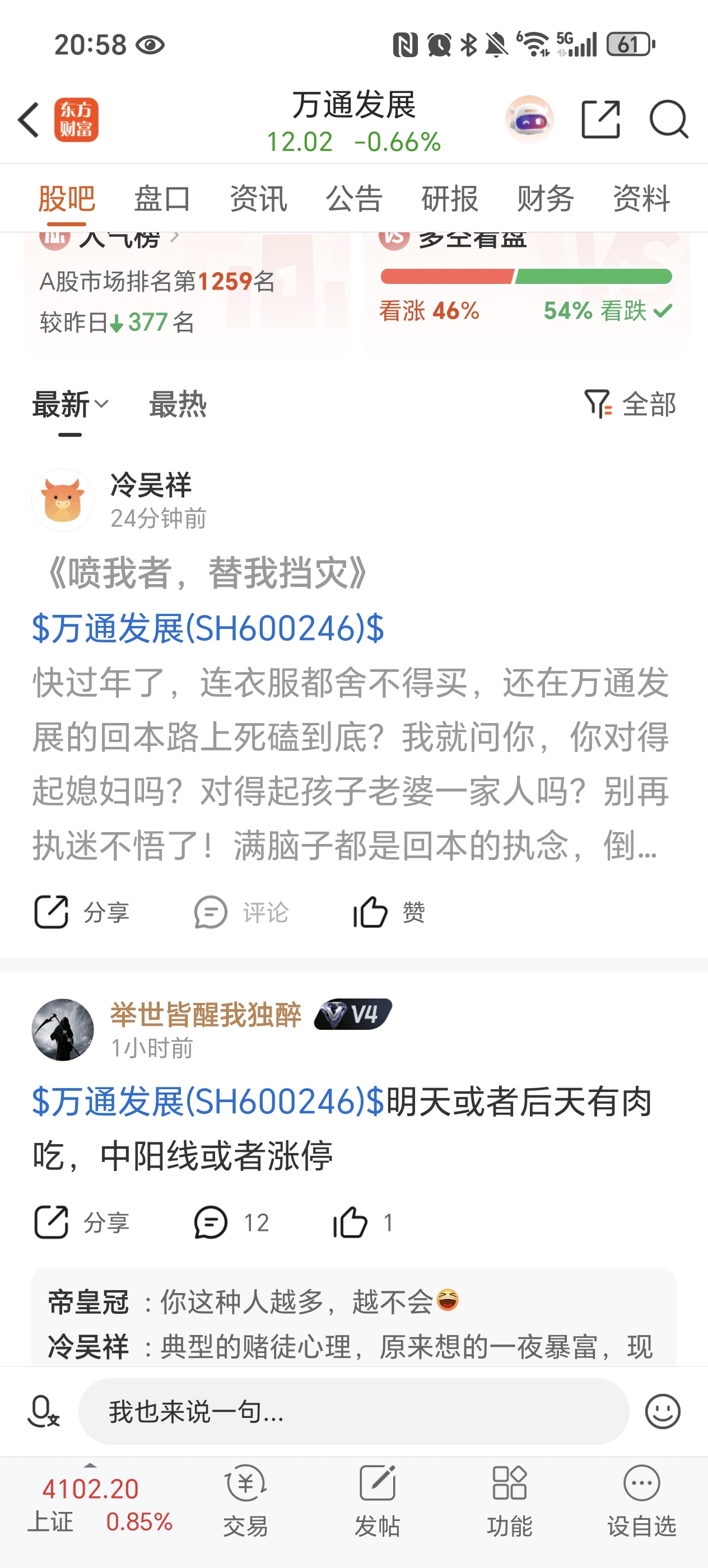 $万通发展(SH600246)$ 神经病就别炒股了,抓紧时间去神经病医院治脑子。