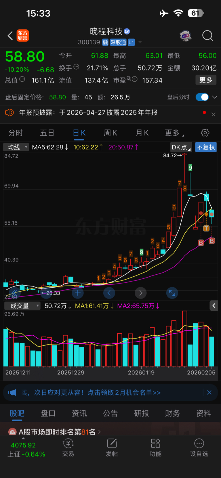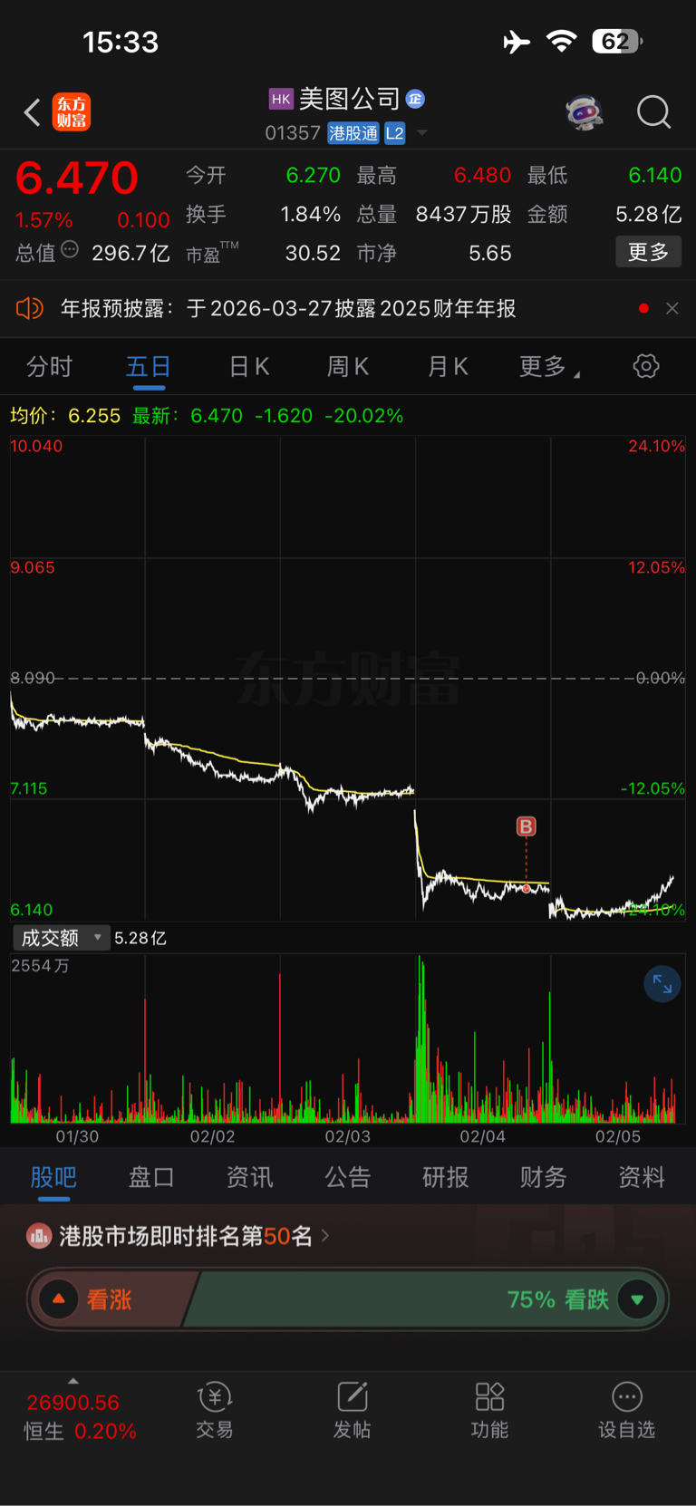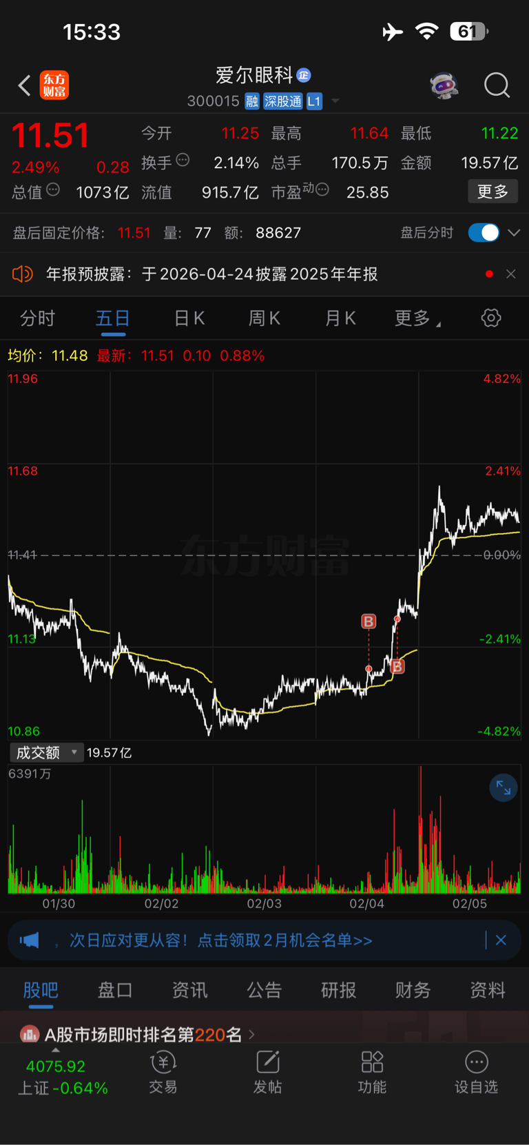 兄弟们,最近万通没动,昨天抄了一点底,其他仓位在美图公司,爱尔眼科跟晓程科技,万