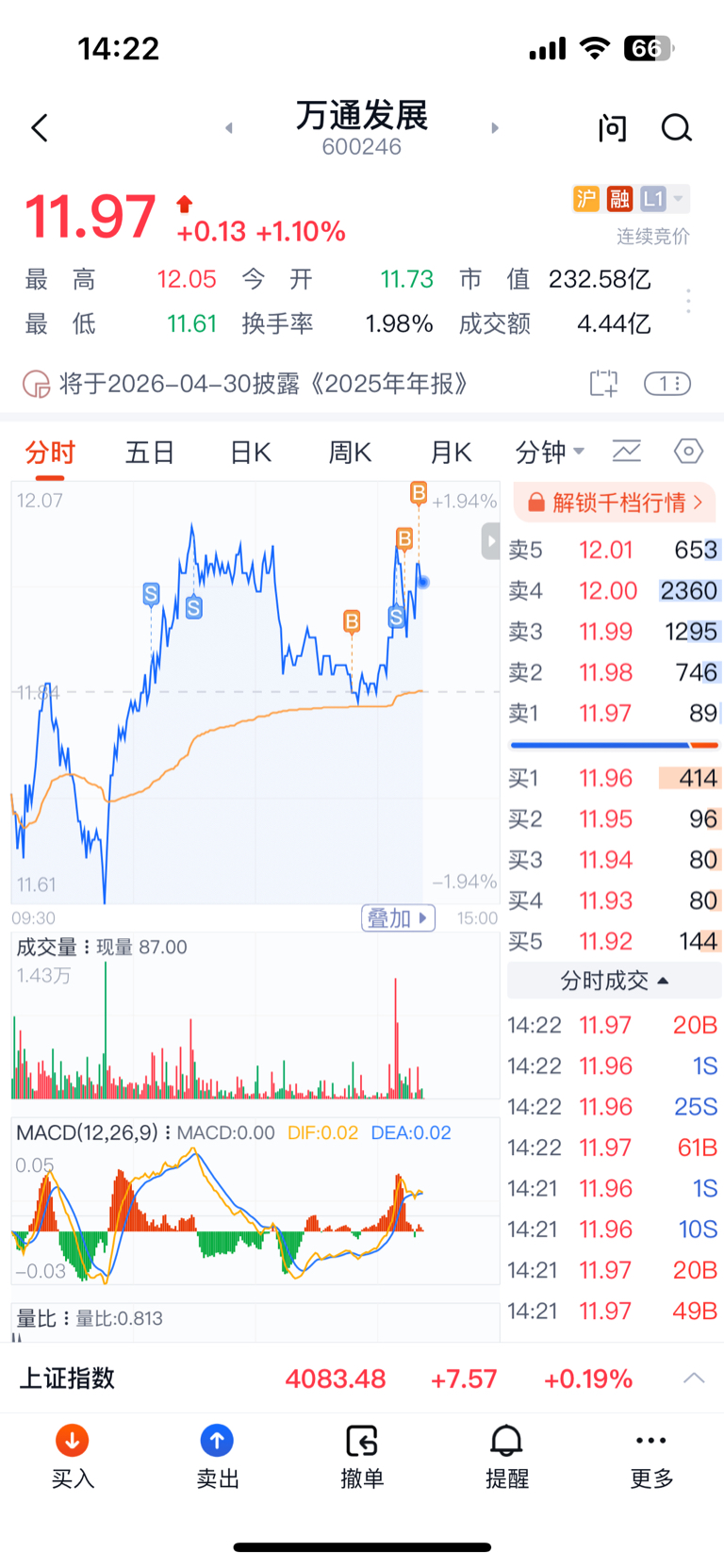 $万通发展(SH600246)$ 难受啊,1毛钱都得T,穷的没钱加了。不然早晨11.6附近多好的机会