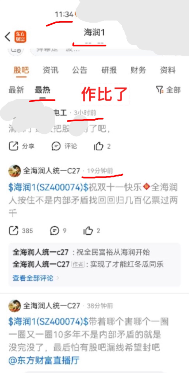 $陕建股份(SH600248)$ 吧长好:海润1极速在最热为无股人一个北京电工开辟了专一作比通道基本每19分钟左右上跳一次,在作比的3个多小时里作比置顶高达10次,第10次作比置顶时间是11:34,请吧长维护一下程序,对违规极速要有管制它的方法不能让它损害企业名声,麻烦了谢谢$东方财富(SZ300059)$ $海润1(SZ400074)$