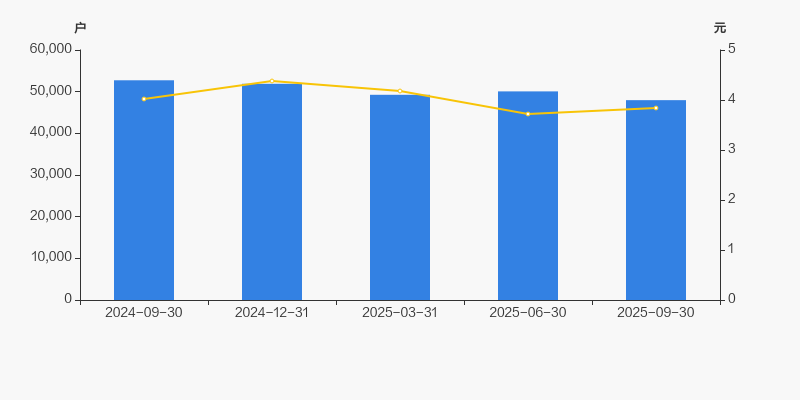 2024年9月30日至今,公司股东户数有所下降,区间跌幅为9.04%。2024年9月30日至2025年9月30日区间股价下降4.59%。