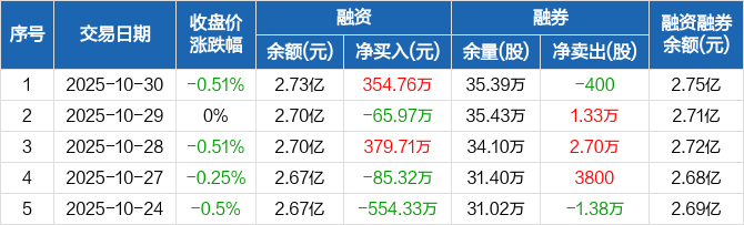 陕建股份:融资净买入354.76万元,融资余额2.73亿元(10-30)