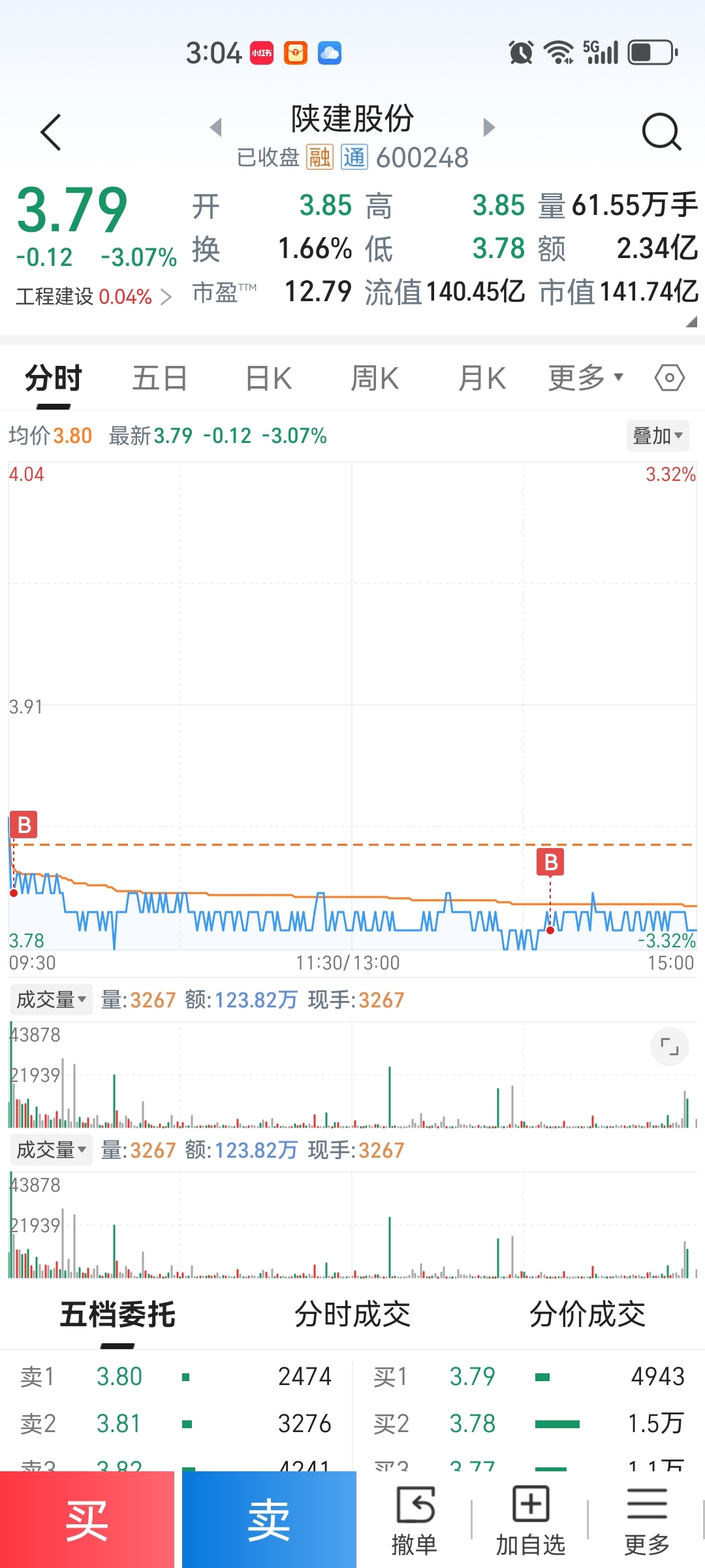 $陕建股份(SH600248)$ 我觉得最多跌到3.6元