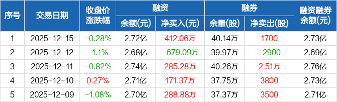 陕建股份:融资净买入412.06万元,融资余额2.72亿元(12-15)