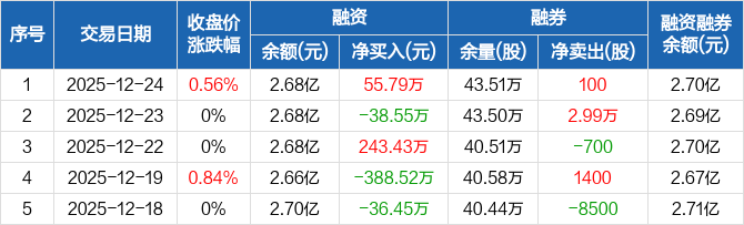 陕建股份:融资净买入55.79万元,融资余额2.68亿元(12-24)