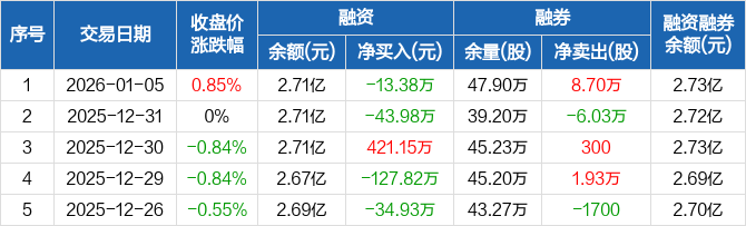 陕建股份:融资净偿还13.38万元,融资余额2.71亿元(01-05)