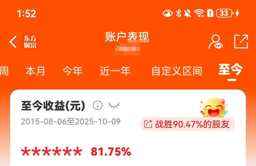 十年大盘新高,不容易。我最差的一个账户只有84%利润。竟然跑赢90%散户,奇了怪