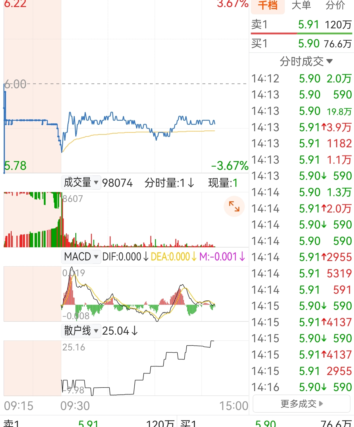 $两面针(SH600249)$ 可怜巴巴全是散户在博弈,几千块钱甚至几百块钱的单子…