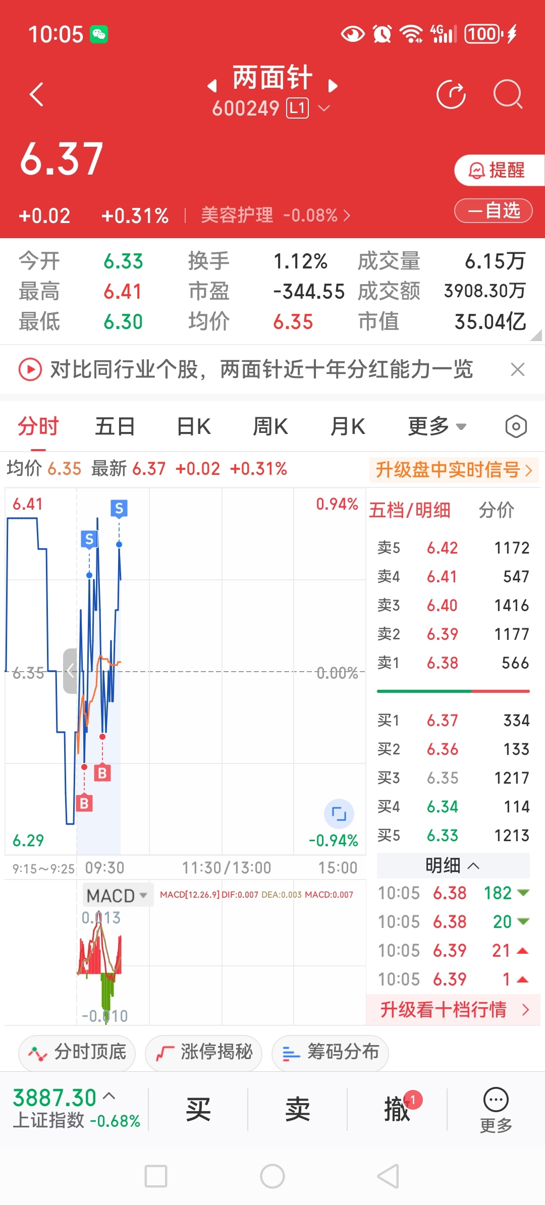 $两面针(SH600249)$ 今天早上任务完成了,你随便