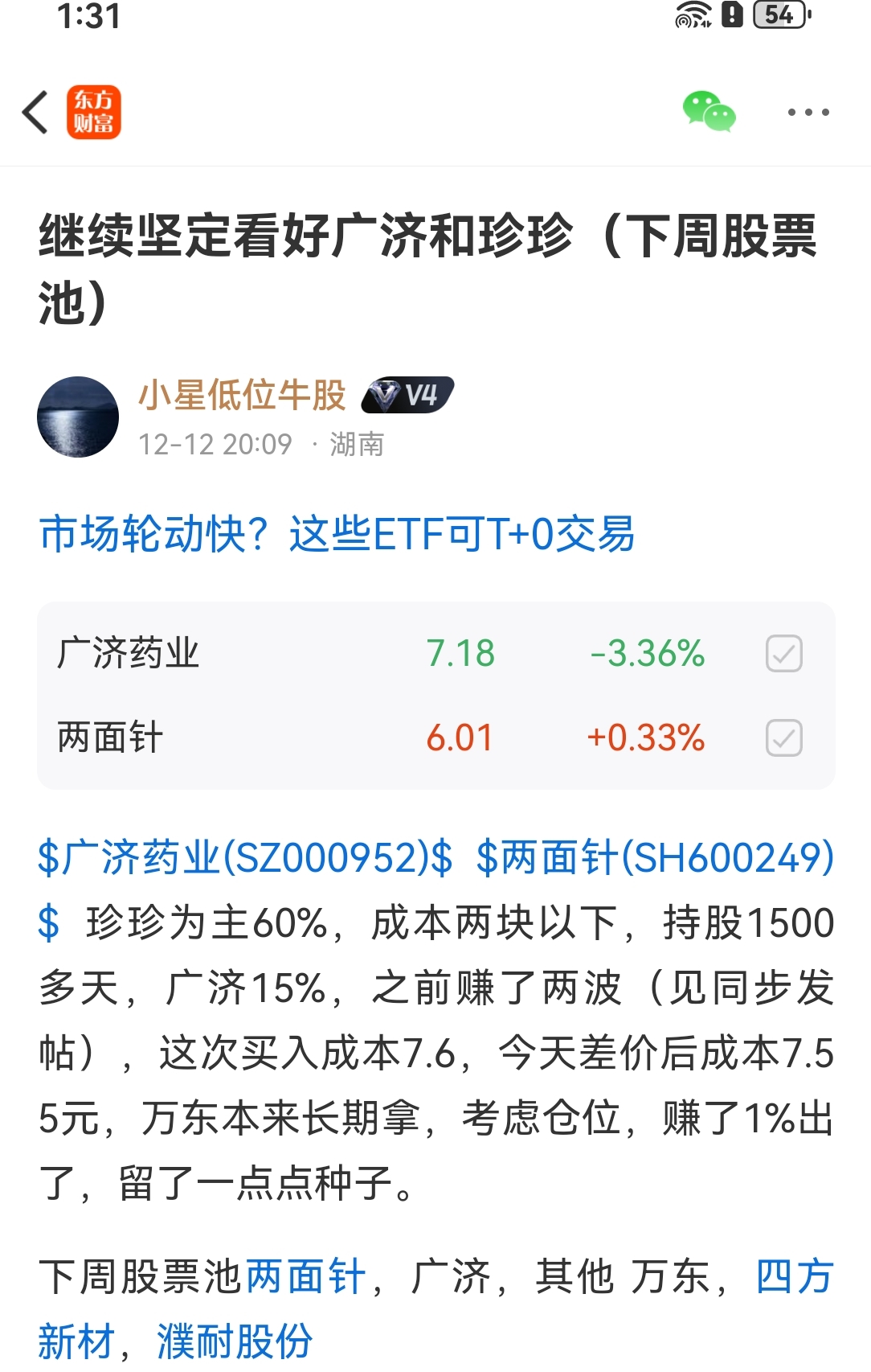 $两面针(SH600249)$ $广济药业(SZ000952)$ 未来一年,做好他俩足够,女貌郎才,一针一广。信不信,由你!其他$罗平锌电(SZ002114)$ 其他备选:万东,四方,濮耐,四方