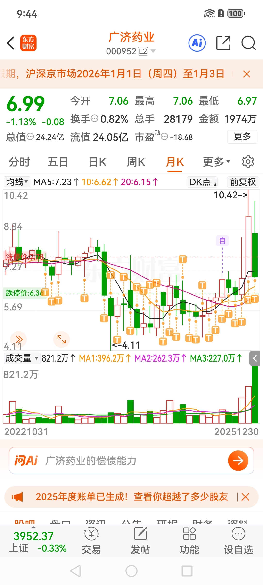 $两面针(SH600249)$ $广济药业(SZ000952)$ $罗平锌电(SZ002114)$ 看月线图,其实很治愈。为什么要那么在意一天一周的走势呢?你看我啥时候埋怨过吐槽过被伤过