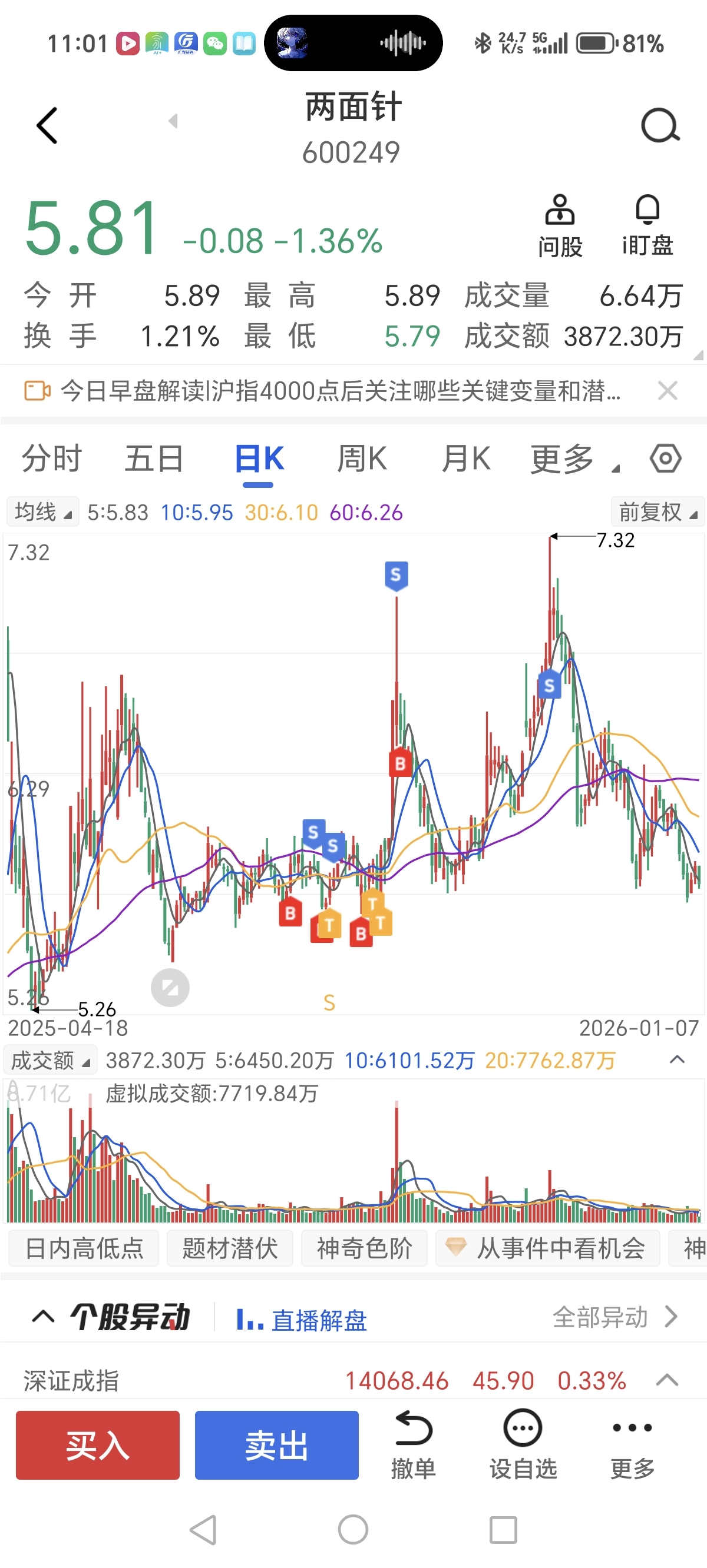 $两面针(SH600249)$ 可以进没有?
