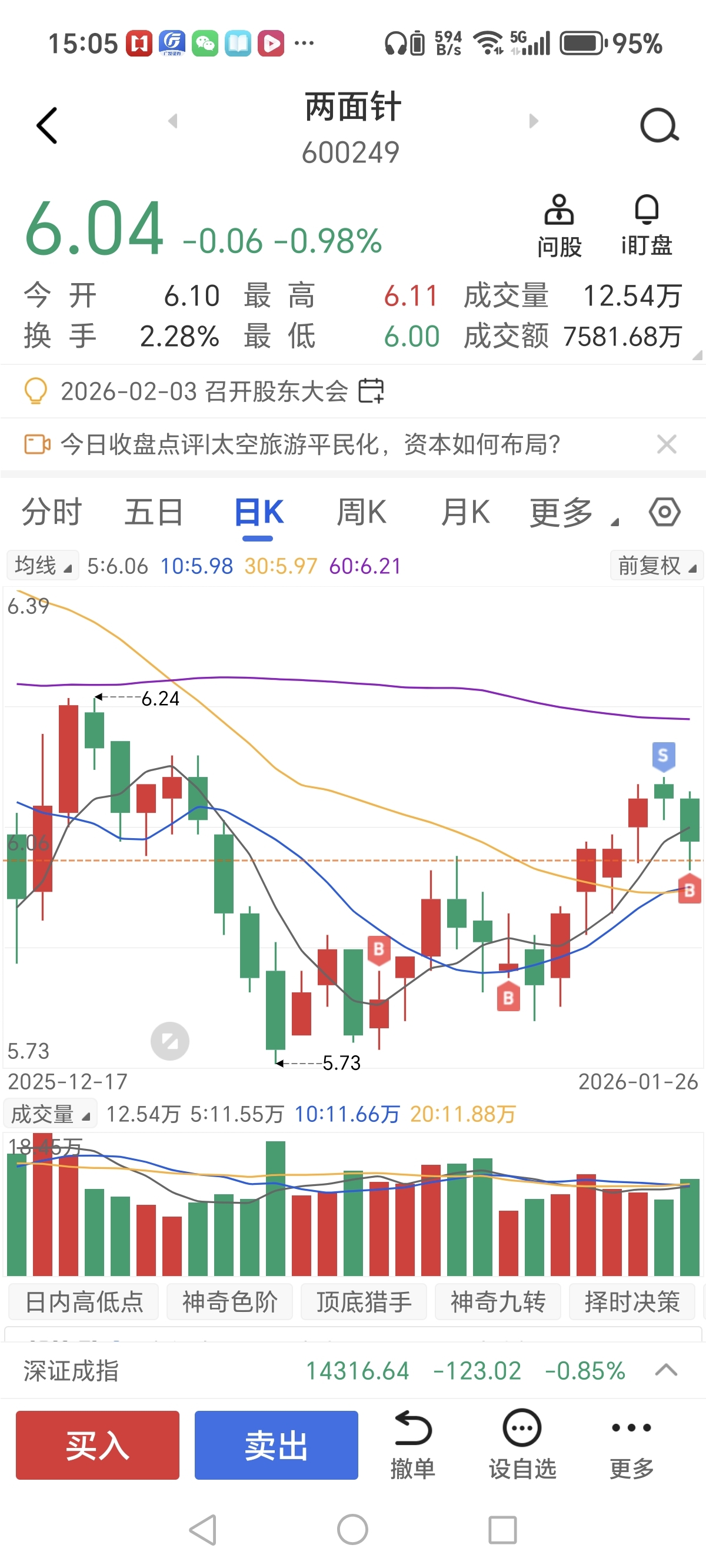 $两面针(SH600249)$ 星期五清仓,今天早上低位进了点