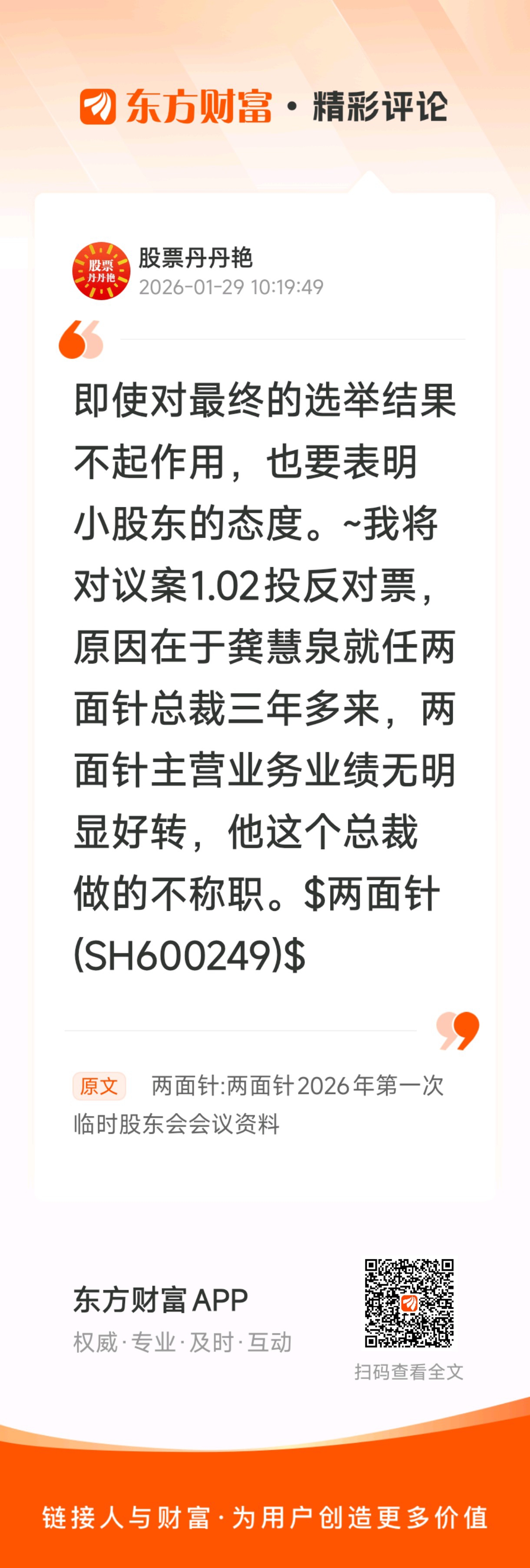 温馨提示: 1.根据《证券法》规定,禁止编造、传播虚假信息或者误导性信息,扰乱证券市场;2.用户在本社区发表的所有资料、言论等仅代表个人观点,与本网站立场无关,不对您构成任何投资建议。用户应基于自己的独立判断,自行决定证券投资并承担相应风险。《东方财富社区管理规定》