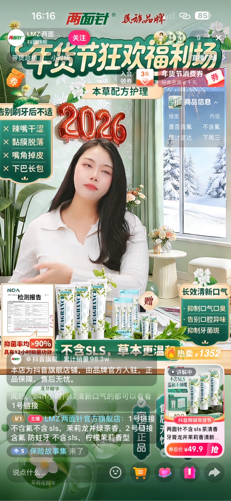 两面针想销售好必须直播但是直播才几个人能好好干么