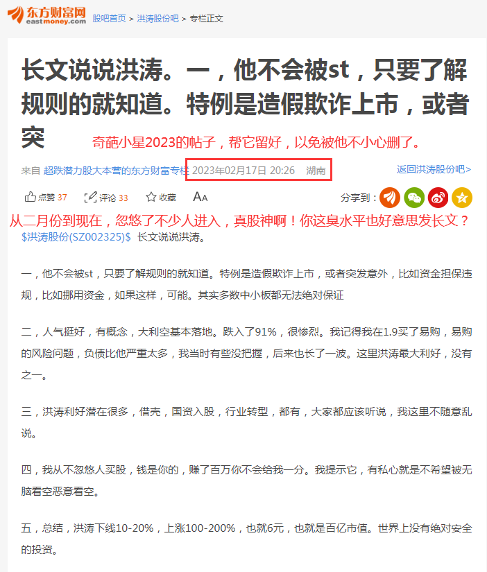 以上三张图是“小星低位牛股”以前的股吧长文荐股,哈哈,现在看看太可笑了