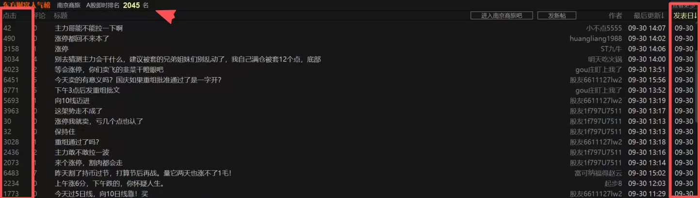 $南京商旅(SH600250)$ 量化从昨天就在开始关注股吧情绪了,今天这些点击量也是高的离谱,话不多说,好好过个周末