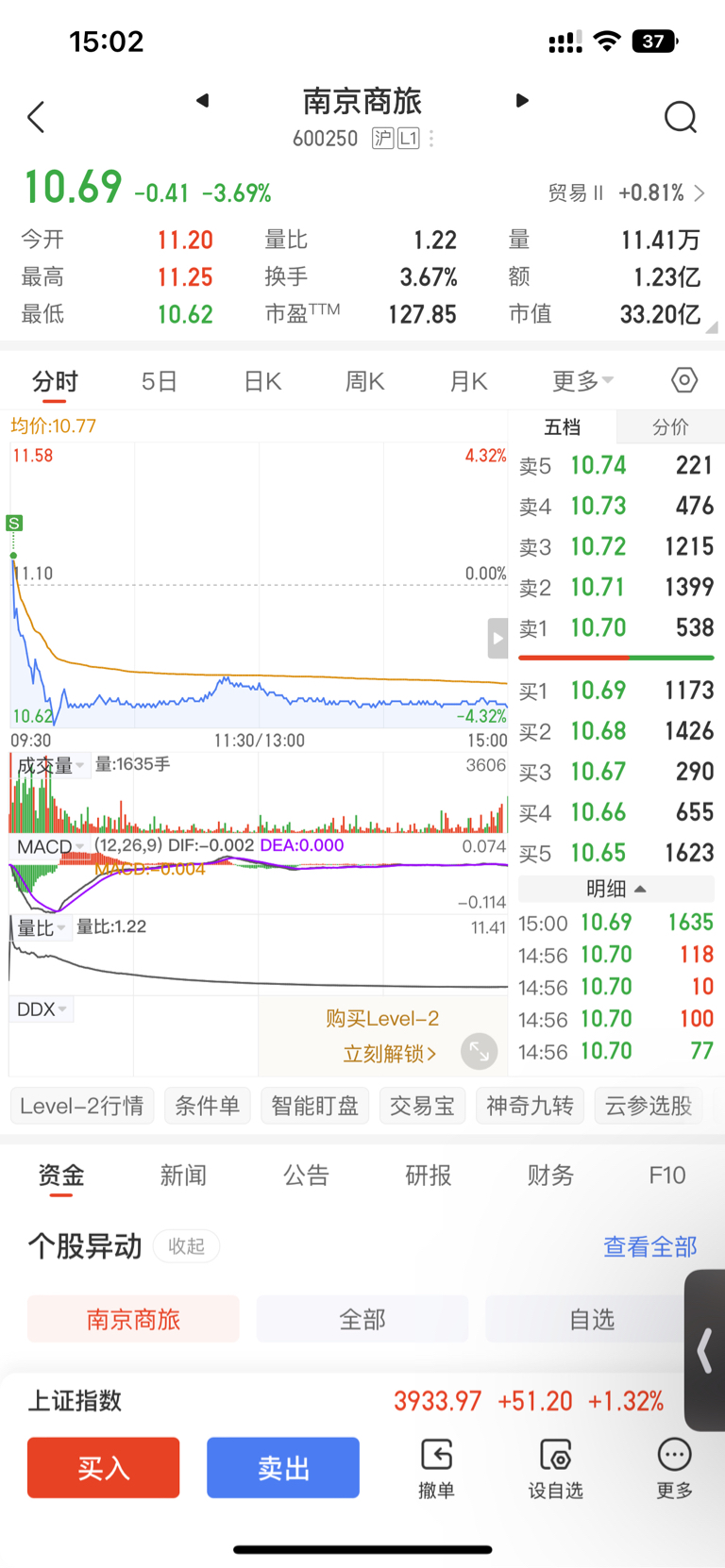$南京商旅(SH600250)$ 今天没砸到位,不接。跟主力斗智斗勇,有机会赢吗?