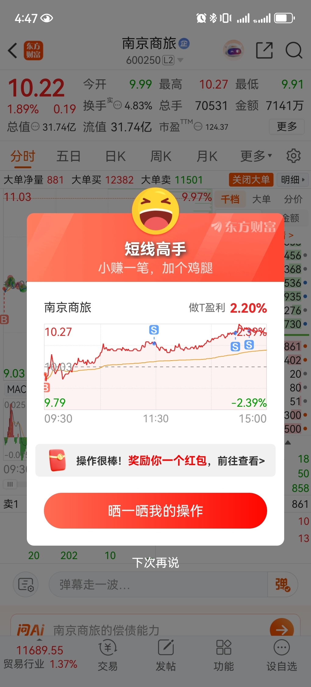 $南京商旅(SH600250)$ T在此,成本继续拉低,气死你主力