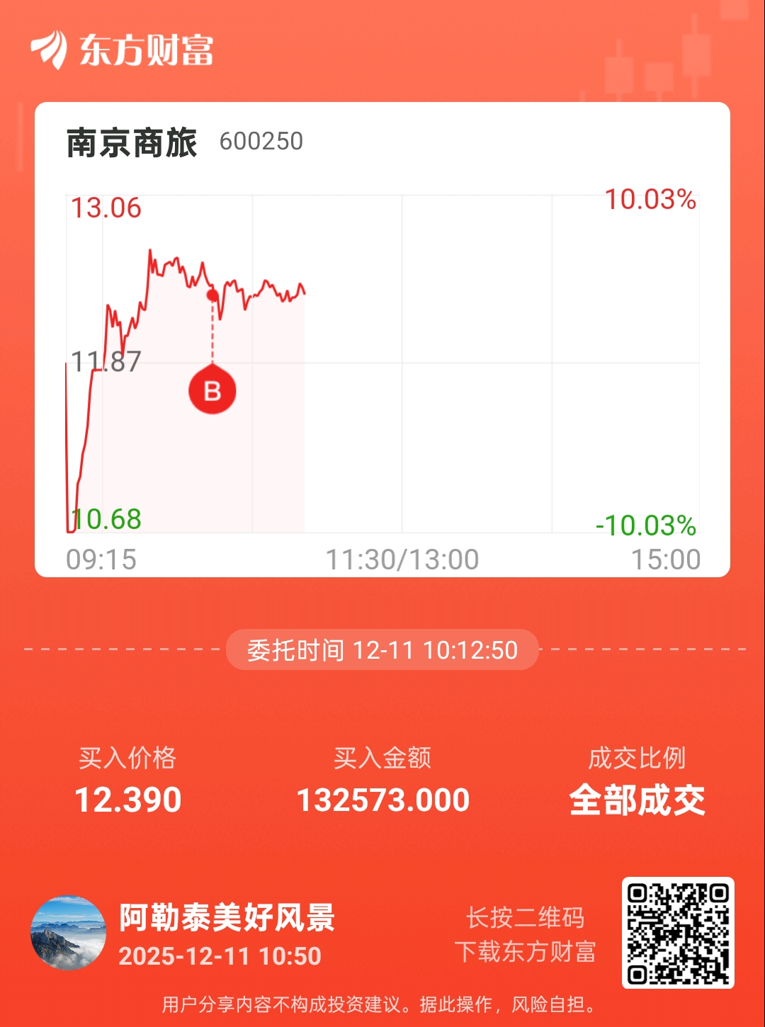 $南京商旅(SH600250)$ 真恨自己开盘不买追高买